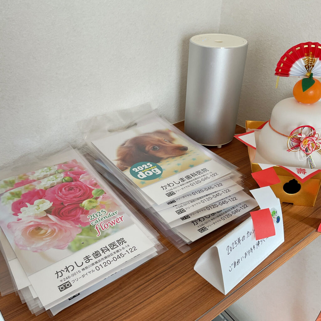 カレンダーまだあります 2025/01/10 【その他】 こんにちは❄️かわしま歯科医院です🦷 2025年のカレンダー犬とお花まだ置いてあります💁🏻♀️ご自由にお持ち帰り下さい。 鏡餅は明日まで置いてあります☃️